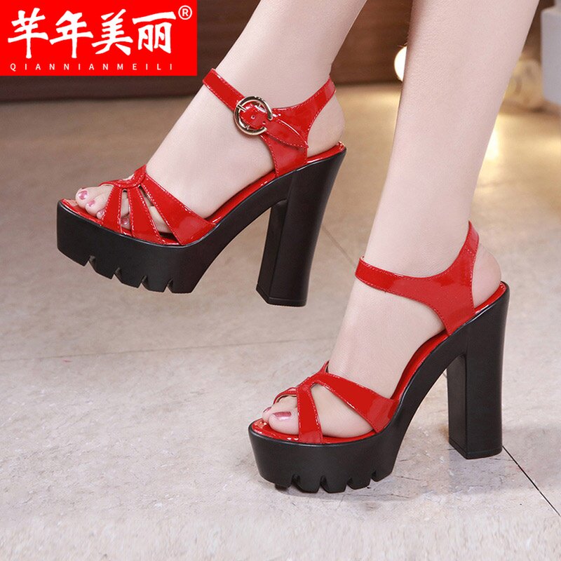 红色漆皮鱼嘴高跟鞋_特价|包邮_超高跟