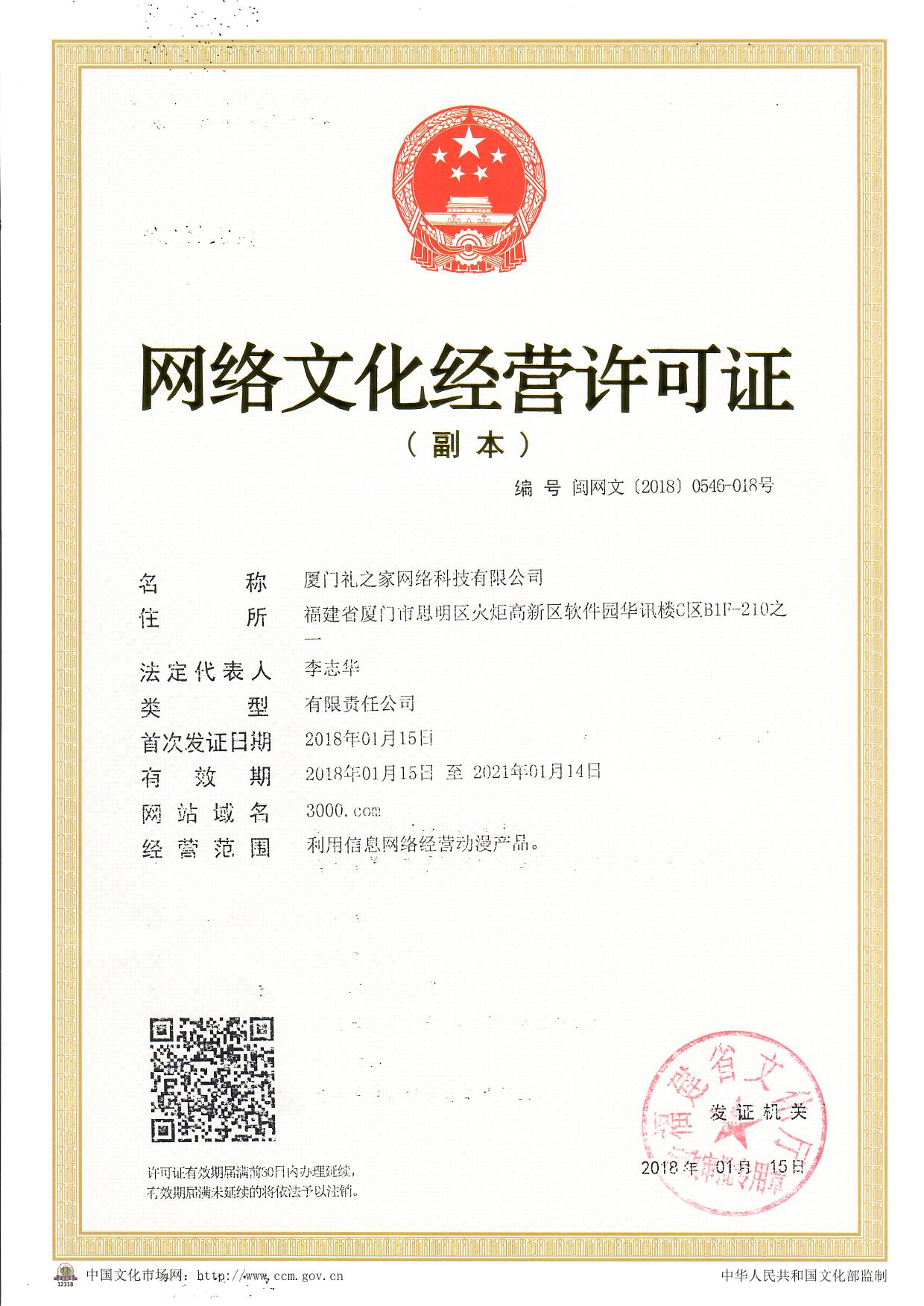 网络文化经营许可证