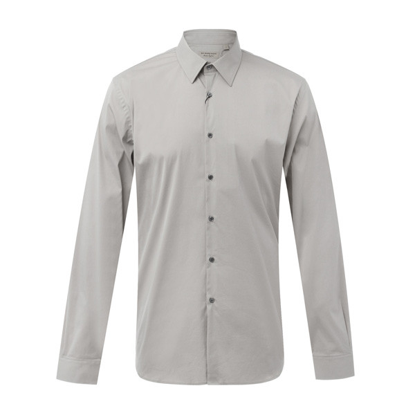 男士长袖衬衫 棉质翻领男士灰色长袖衬衫