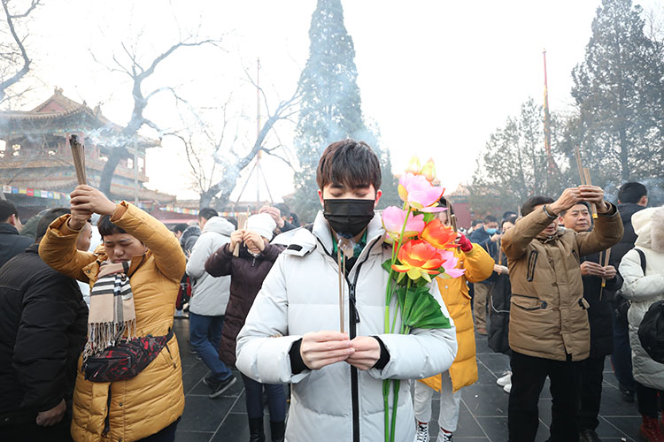 北京8万市民赴雍和宫烧香 门口排队500米(