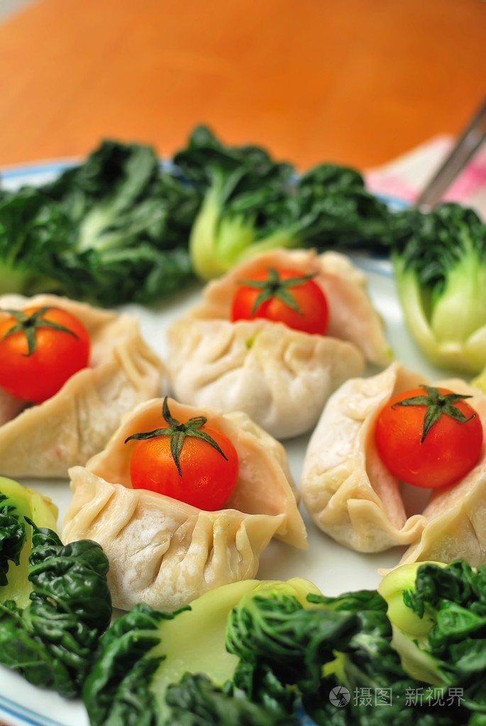 中国饺子和蔬菜