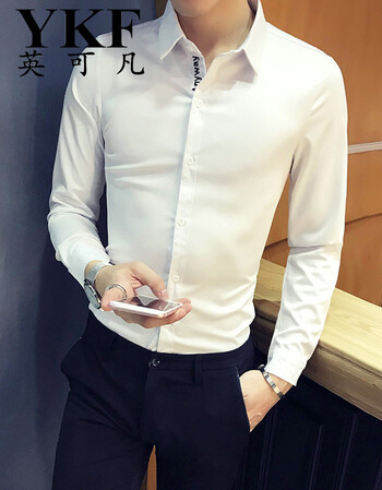 英可凡2019春季韩版男士长袖衬衫英文