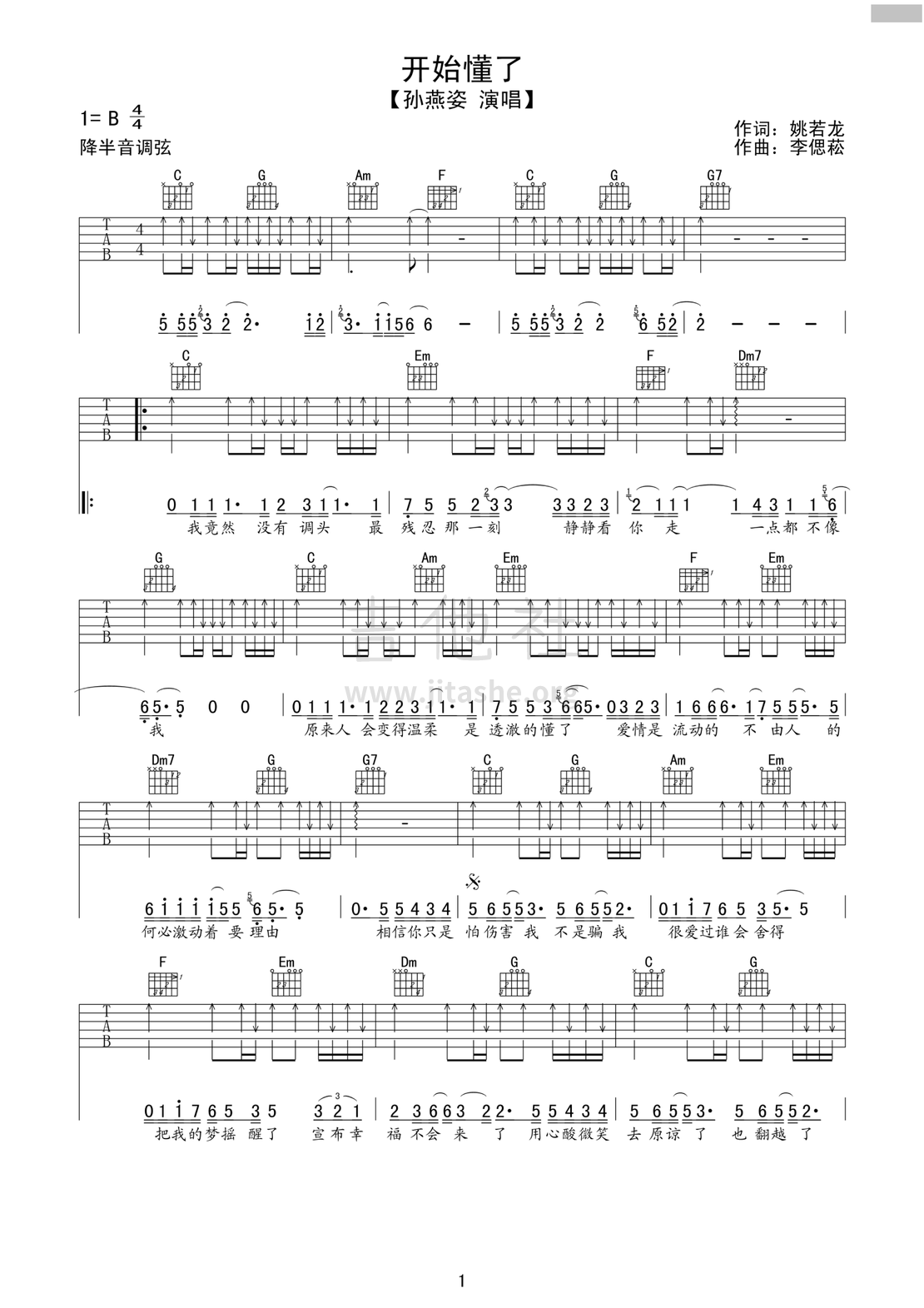 开始懂了吉他谱(图片谱,弹唱)_孙燕姿(