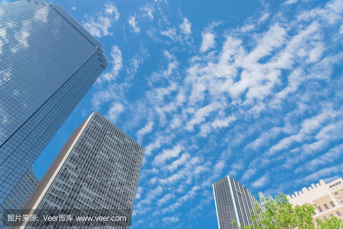 蓝色摩天大楼喷泉地方是街市达拉斯地平线