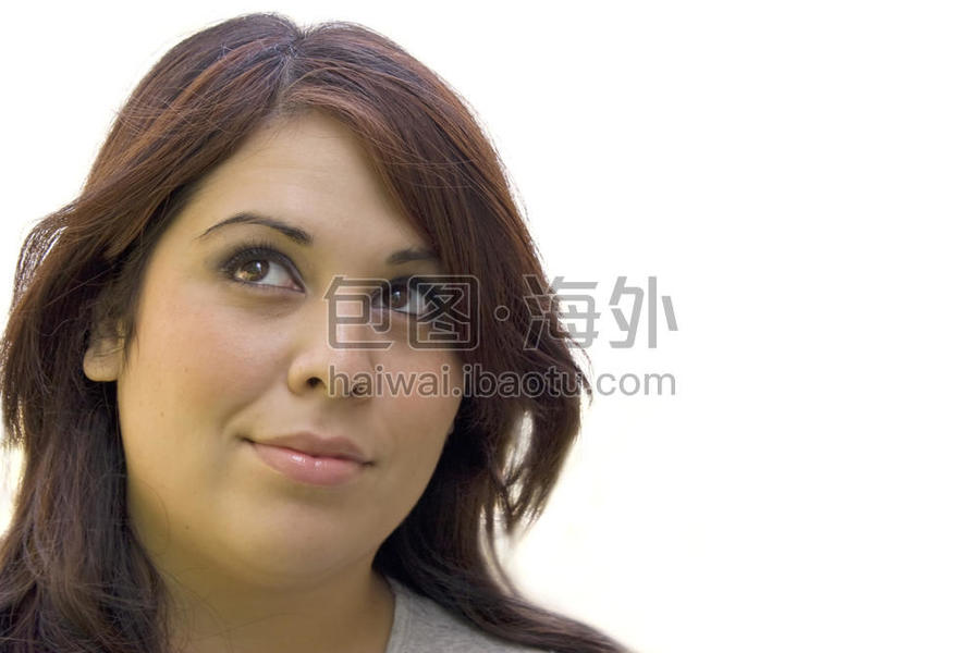 一个年轻女孩深情地想着什么。右边有大量