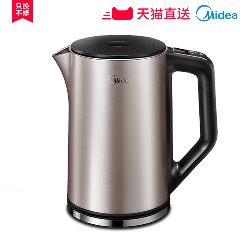美的(Midea)电水壶304不锈钢家用烧水壶1.5L电热水壶双层防烫一体式无缝