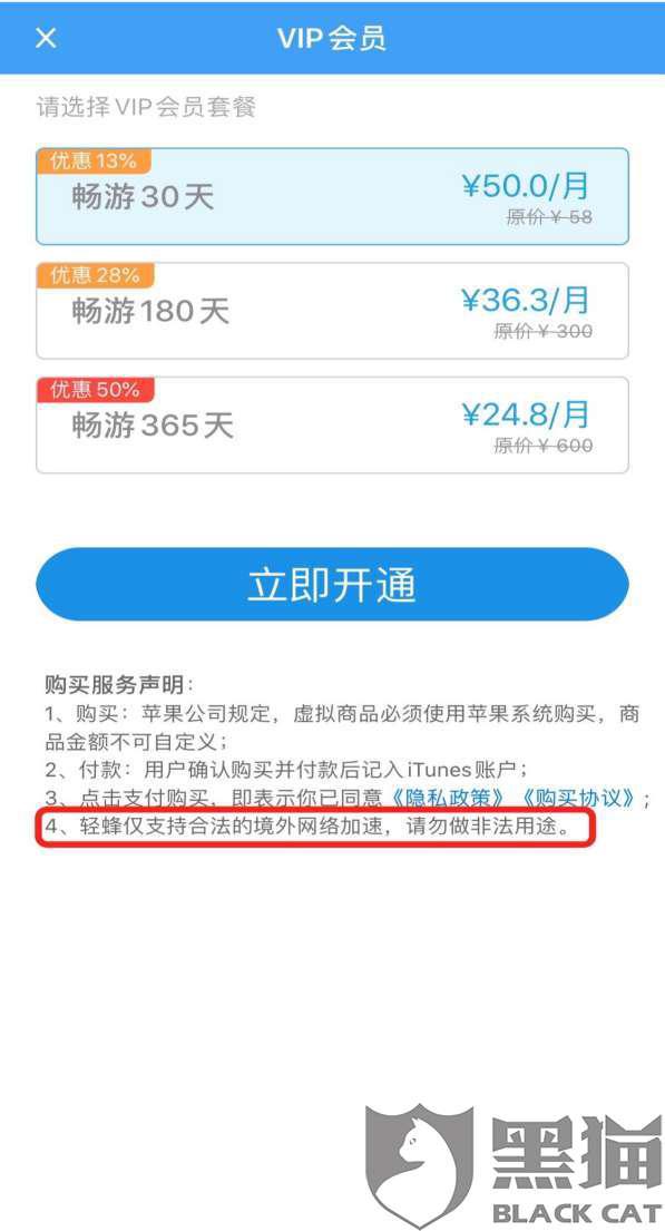 旗下轻蜂加速器虚假宣传,谋取会员费,客服