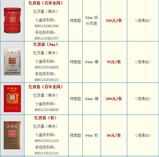 南洋红双喜罐装价格查询 最新南洋红双喜烟价格表一览