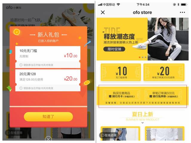 【滴滴打车优惠券+ofo小黄车骑行券】