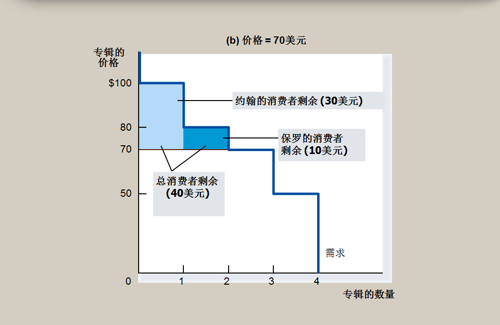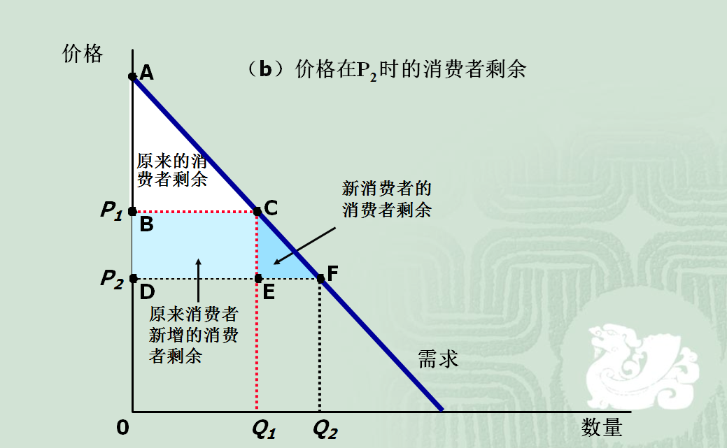 消费者剩余的意义是什么???- 答:都大于其价格。在一定条件下(利用需求曲线图),消费者剩余的货币价值可以用需求曲线以下、价格线以上的面积来衡量。 消费者剩余=买者的评价一买者的实际支付