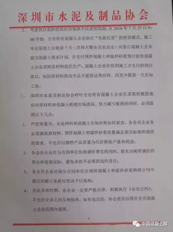 砂价失控!深圳砼企集体发声:先款后货,价随