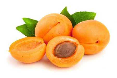 杏果实用隔离在白色背景上的叶子