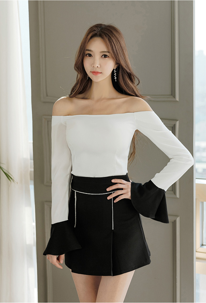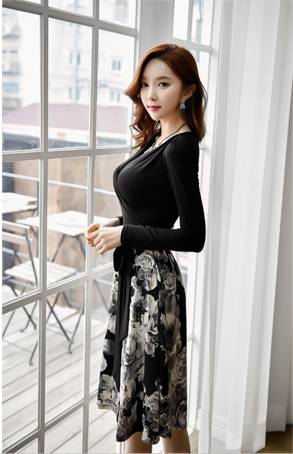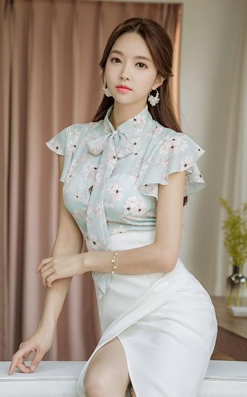 时尚摄影美图,朴洙妍印花裹肩领带花瓣拼接裙,漂亮又优雅