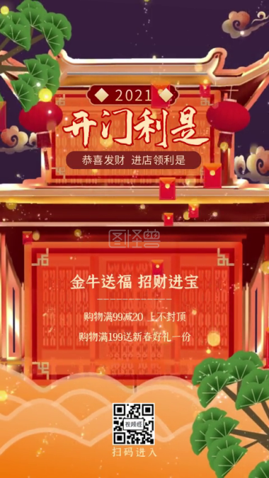淘宝首页海报开门利是送吉祥海报PSD下载