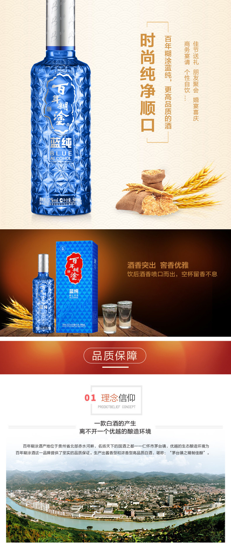 百年糊涂酒52度蓝纯高端白酒 糊涂酒业里程碑式产品