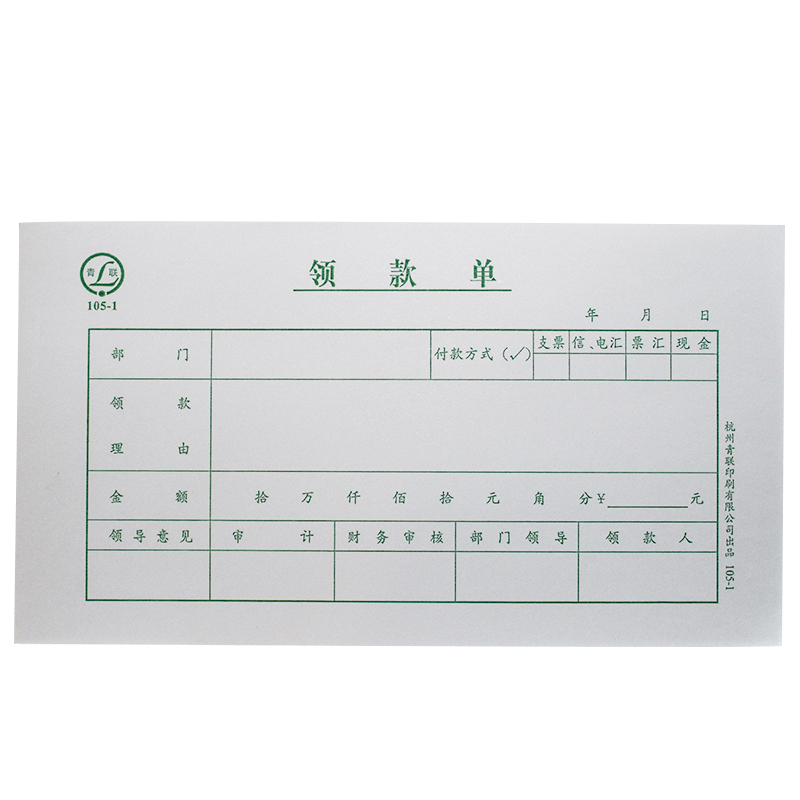 青联领款单 现金款项领用支付报销申请单据财务会计用品105-1 01