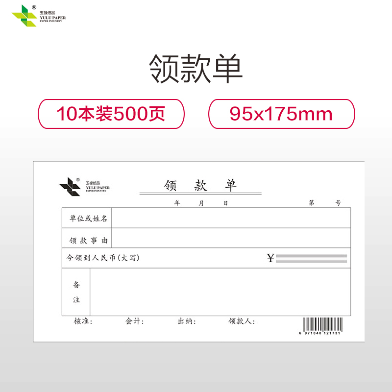 玉禄纸品(YULU PAPER)95-175mm 领款单YLLKD-1 凭证单据本财务办公用品10