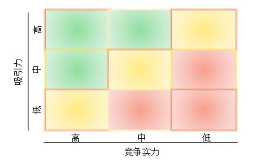 简介:GE矩阵(GE Matrix/Mckinsey Matrix) GE矩阵法又称通用电气公司法、麦肯锡矩阵、九盒矩阵法、行业吸引力矩阵