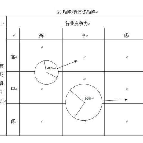 GE矩阵的权重是固定的数值吗- 答: 不是的,需要你们给自己公锚定一个合适的位置,然后在行业吸引力衡量指标中打上相应的权重(影响因素程度取值)。