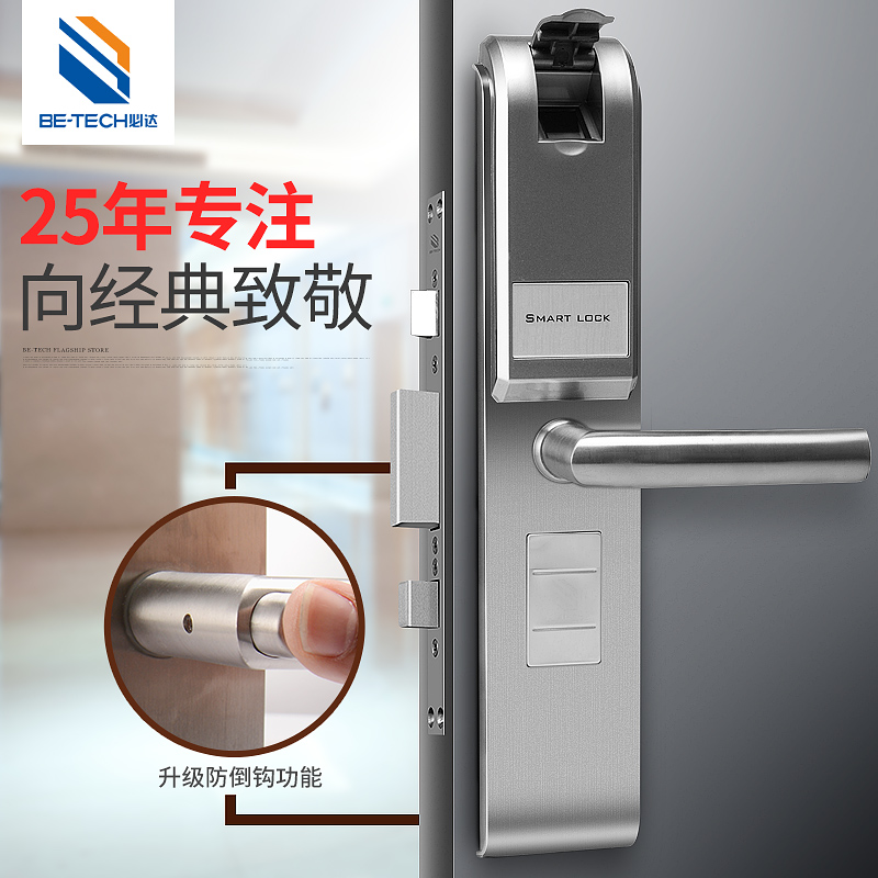简介:必达指纹锁采用自主研发全不锈钢AN2电子防盗锁舌。粉末冶金成形,具有优质的抗冲击、抗腐蚀、抗磨损能力。