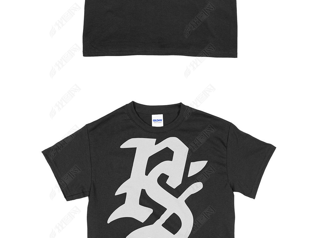 黑色嵌白边短袖圆领T恤衫定做款式模板图_