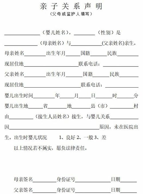 亲子关系声明表
