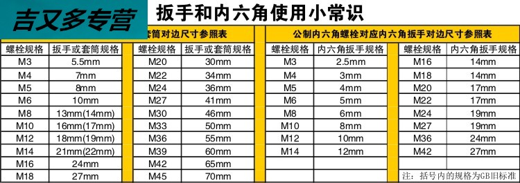 (外六角内六角螺栓和对应扳手尺寸对照表