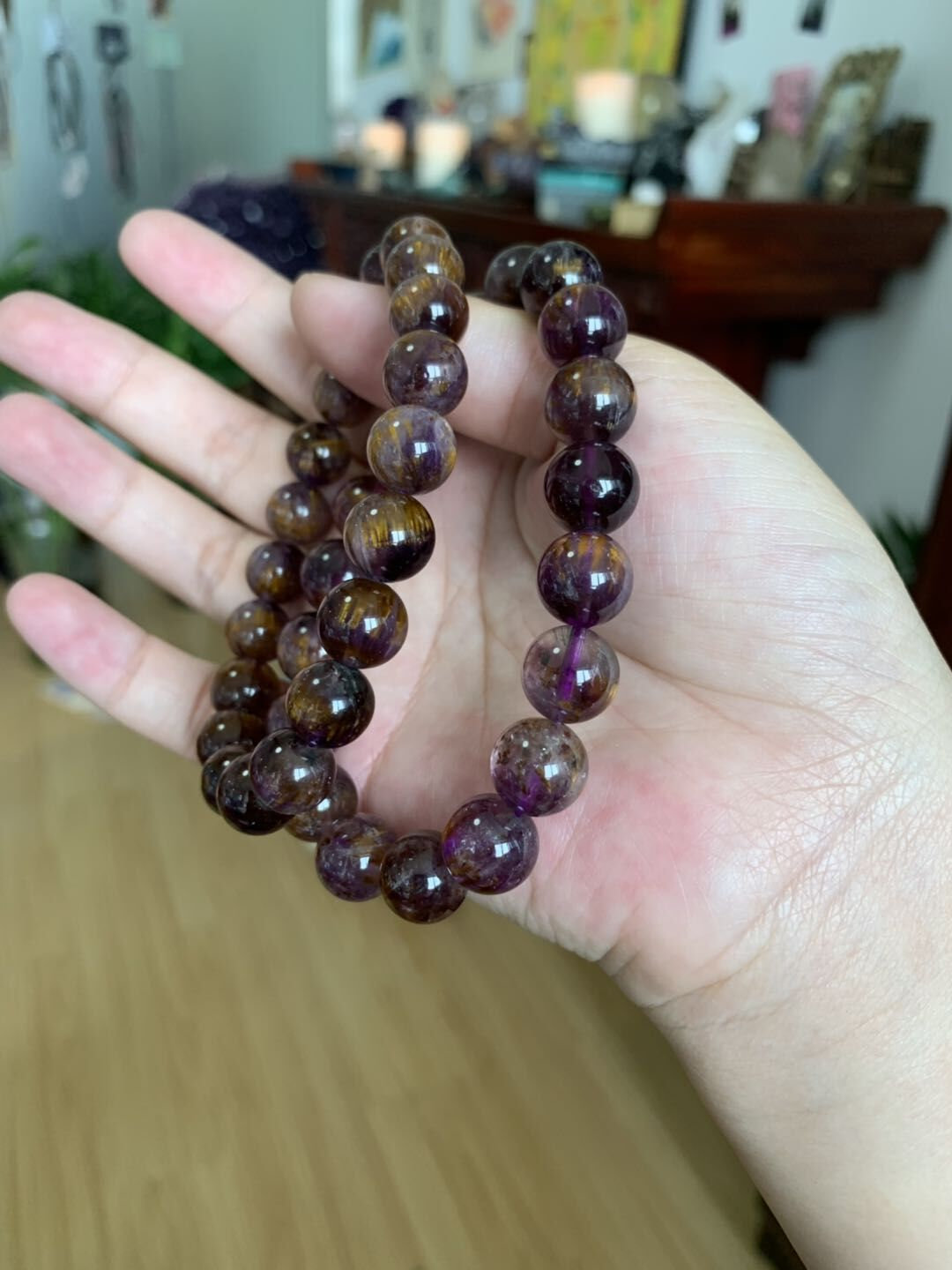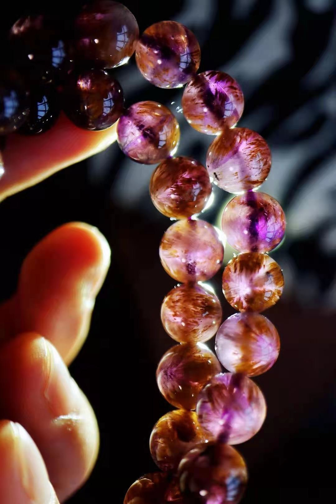 天然紫幽灵紫钛晶异象聚宝盆手串