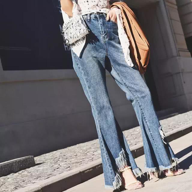 新款紧身牛仔裤,搭配高跟鞋,显美嫩腿贼