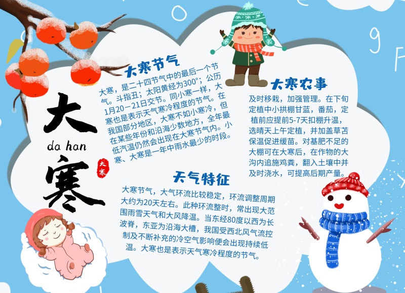 二十四节气大寒卡通图片 大寒祝福语文字高清手抄报