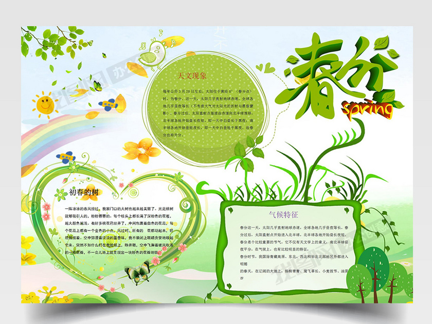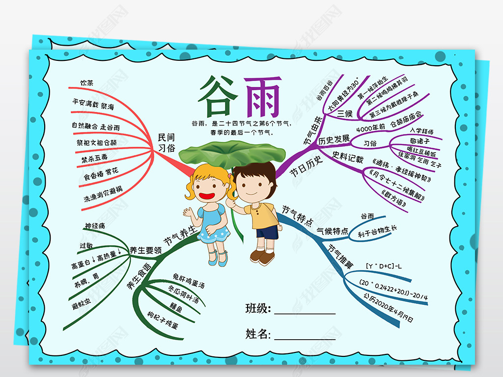 谷雨思维导图小报手抄报二十四节气小报模版校园学生卡通春天踏青手抄报