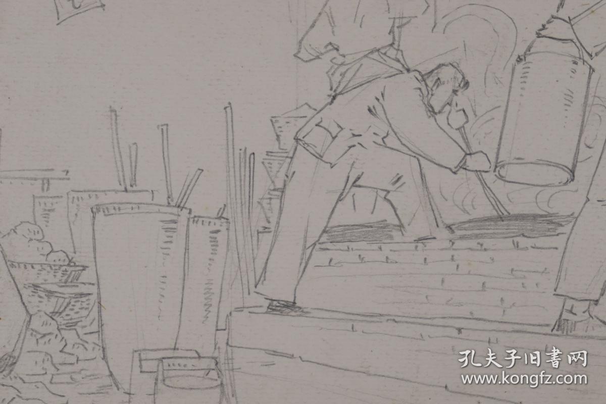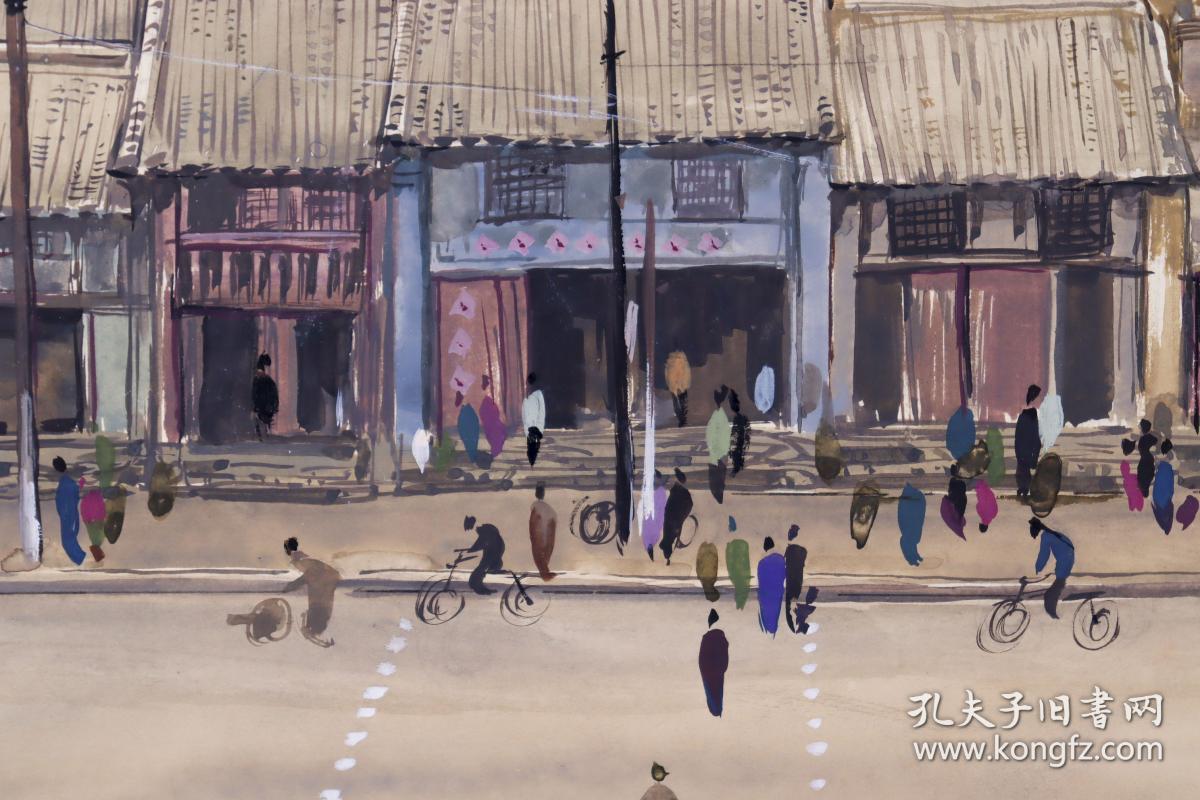 马克宣水彩画作品《闹市》、《打水》正