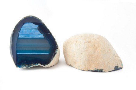 白色和蓝色的 geode 在白色背景下一节