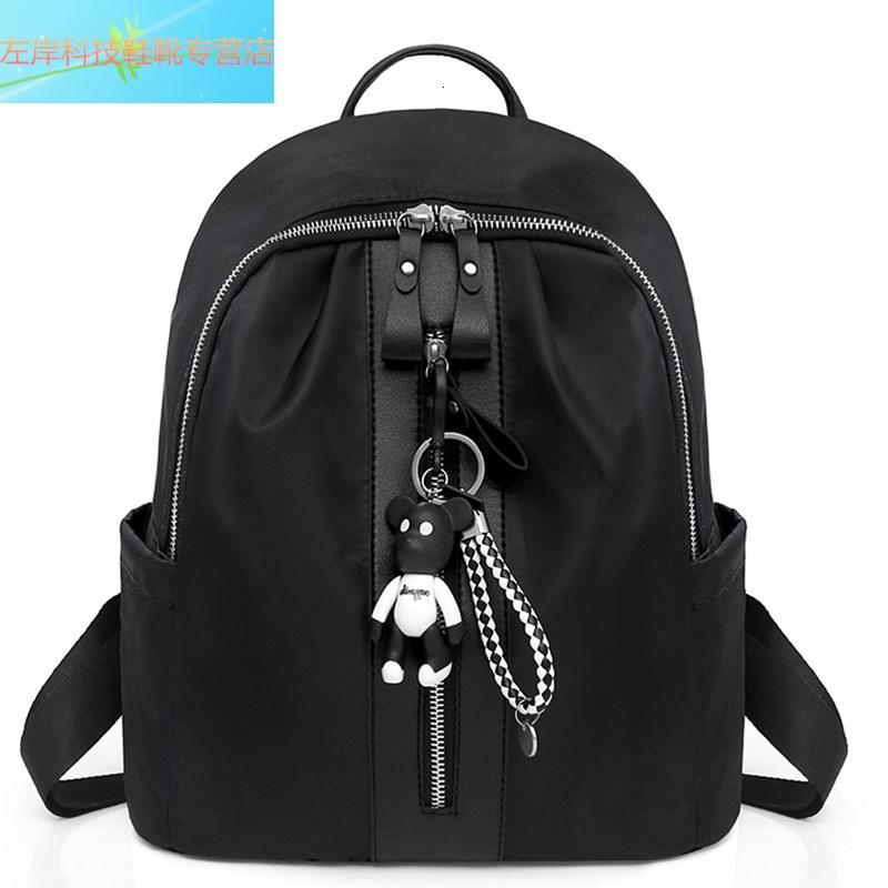 季薇雅双肩包女背包2019新款韩版潮牛津布帆布百搭防盗女士旅行包包 黑色