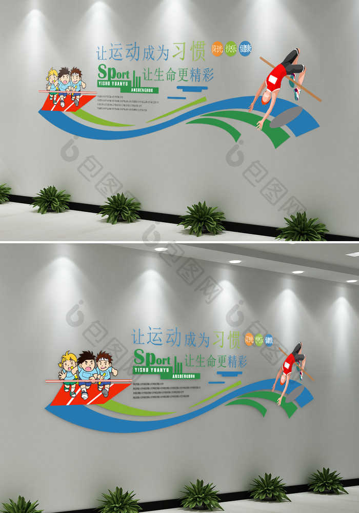 校园体运动宣传语微立体文化墙图片