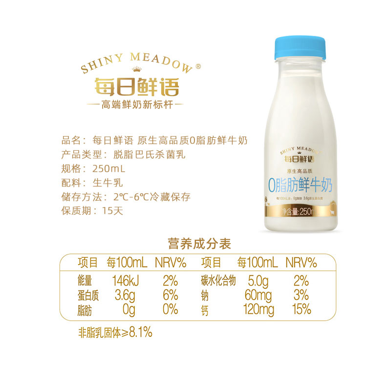 鲜牛奶0脂250ml蒙牛低脱脂牛奶巴氏杀菌