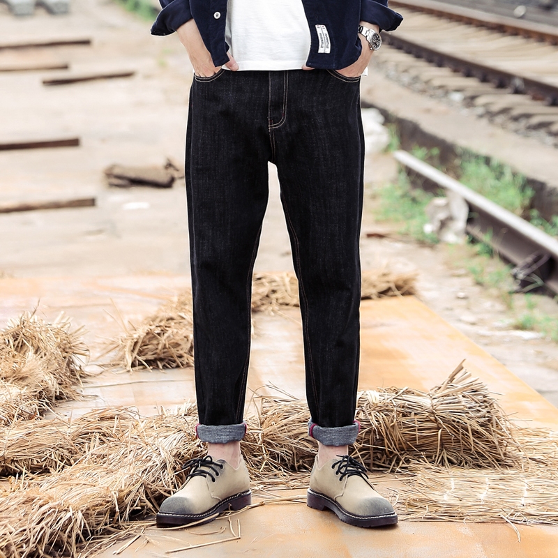 原创潮牌春装欧美街头潮流黑色做旧小脚牛