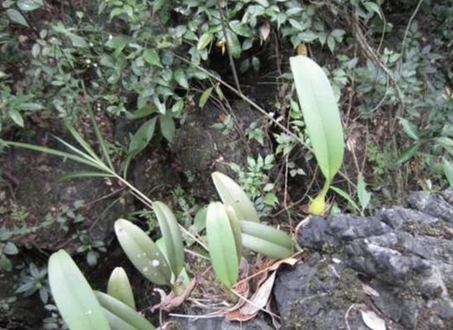 长在岩石上的,这是什么植物?- 答:<p>石豆兰</p> <p>学名:Bulbophy llum radiatum Lindl</p> <p>别名:石豆、岩豆、石枣、石米、金枣、独叶岩珠、鸭舌兰、岩板楂、青龙珠、线岩珠</p