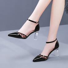 鞋子女2019春季新款尖头扣带欧美高跟鞋