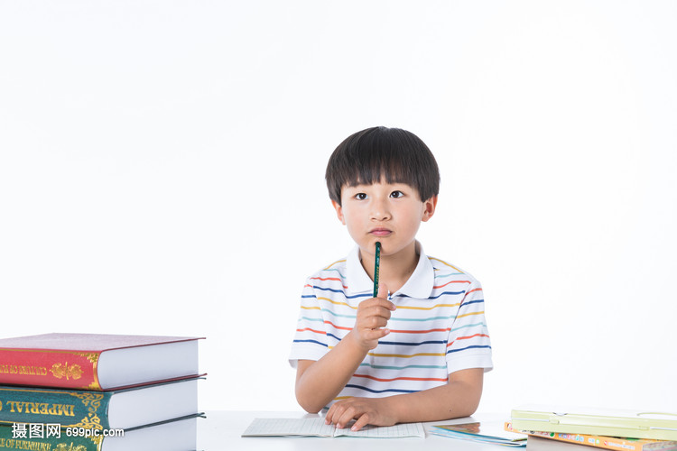 儿童在课桌上写作业