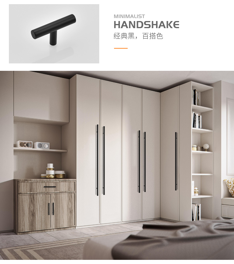 现代简约黑色橱柜拉手北欧铝合金加长衣柜门把手欧式柜子抽屉手柄