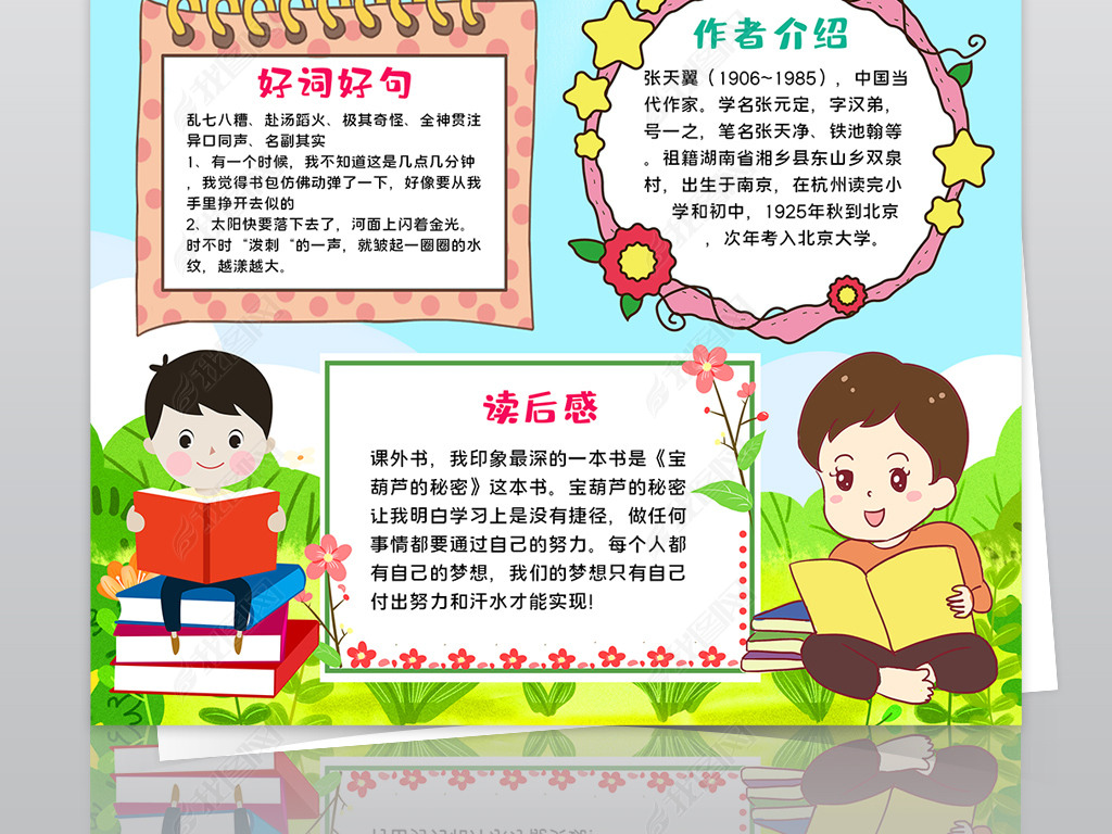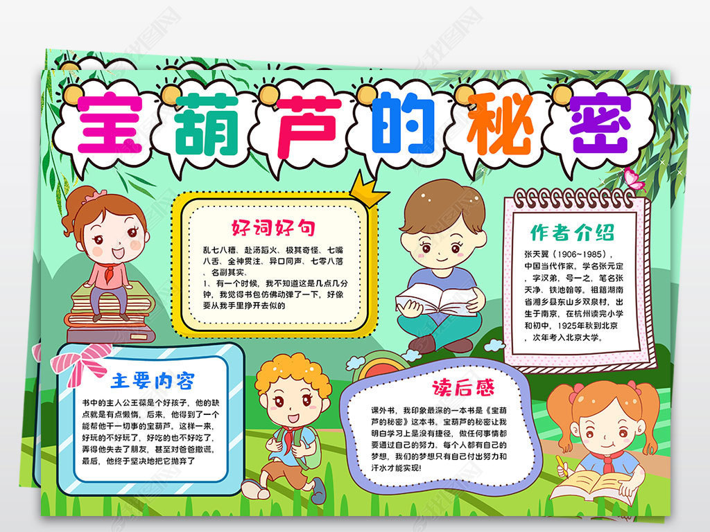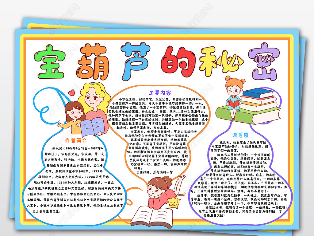 宝葫芦的秘密读书小报手抄报寒暑假阅读书笔记读后感电子小报手抄报模板