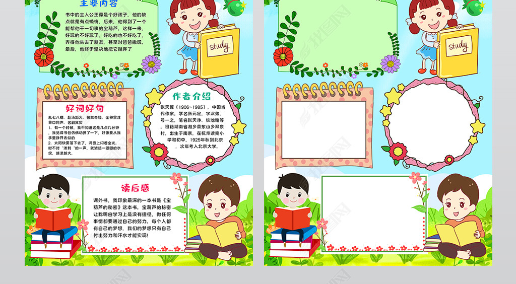 宝葫芦的秘密读书小报手抄报读书笔记模板