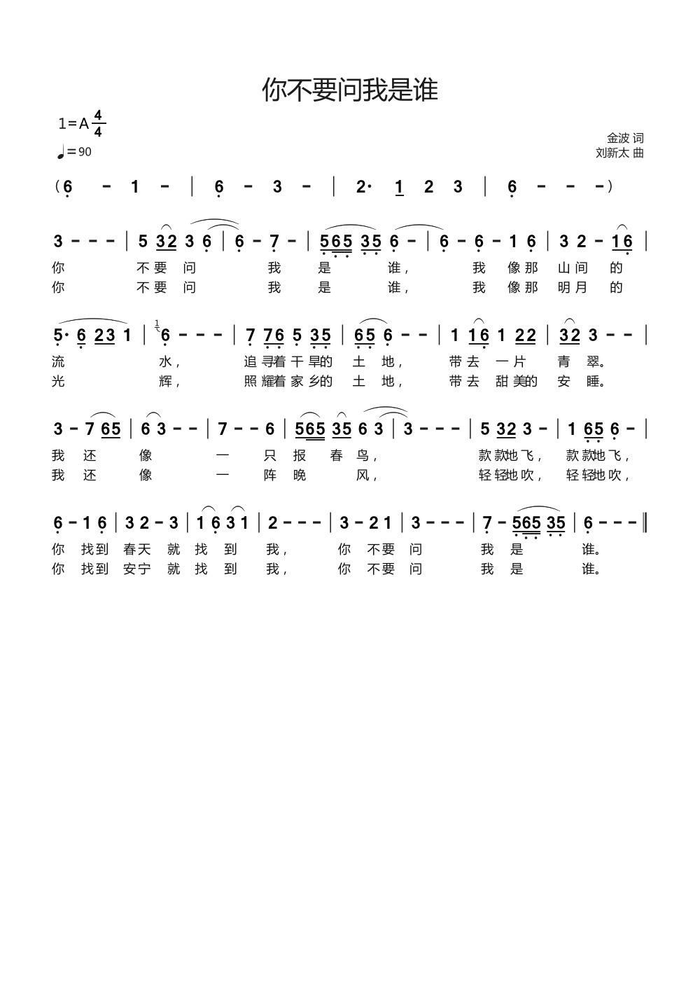 你不要问我是谁歌谱