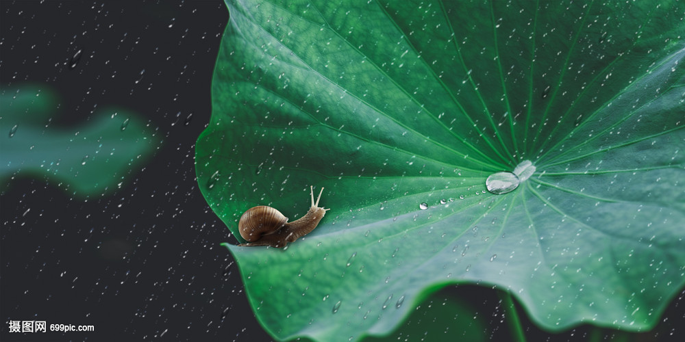 雨中的蜗牛,枝叶,植物花草,摄影,汇图网www