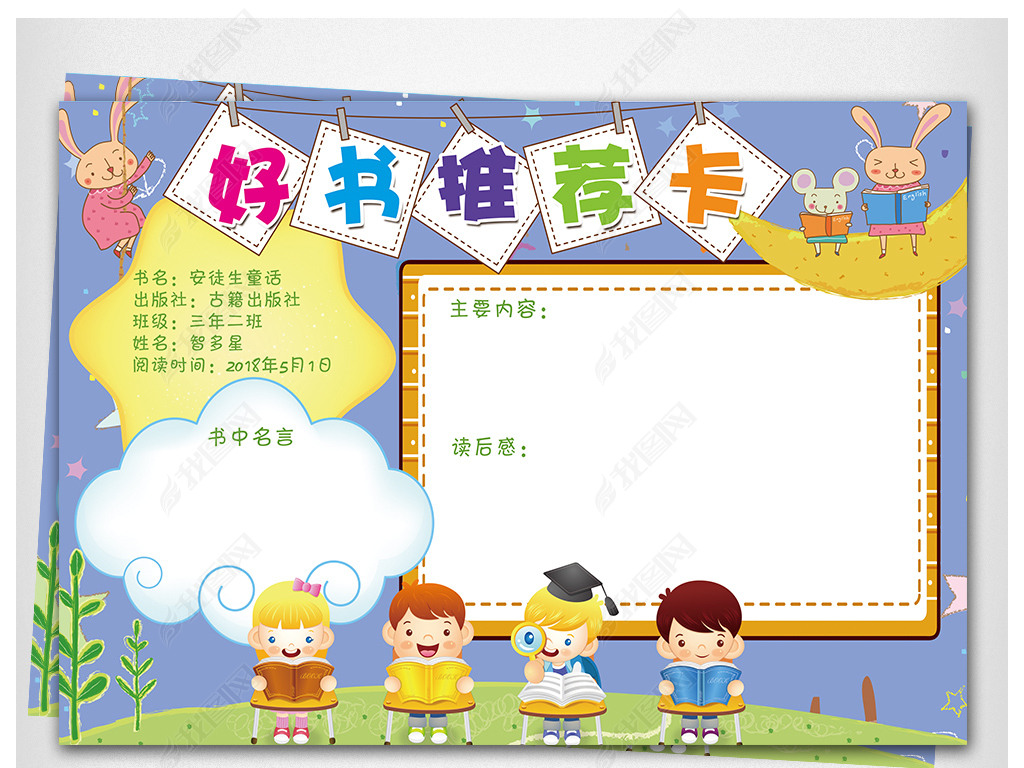 米小圈上学记读书卡通用好书推荐卡小报读后感卡片