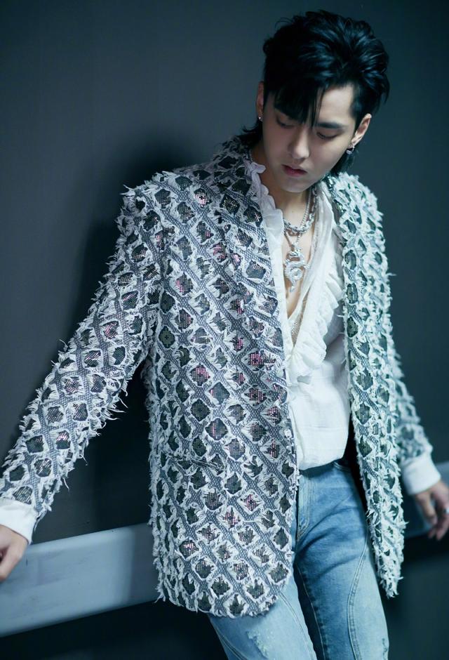 吴亦凡穿黑色嘻哈服演绎音乐,头上的一