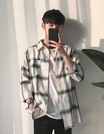 2018春秋季新款毛边长袖衬衫下摆棉质