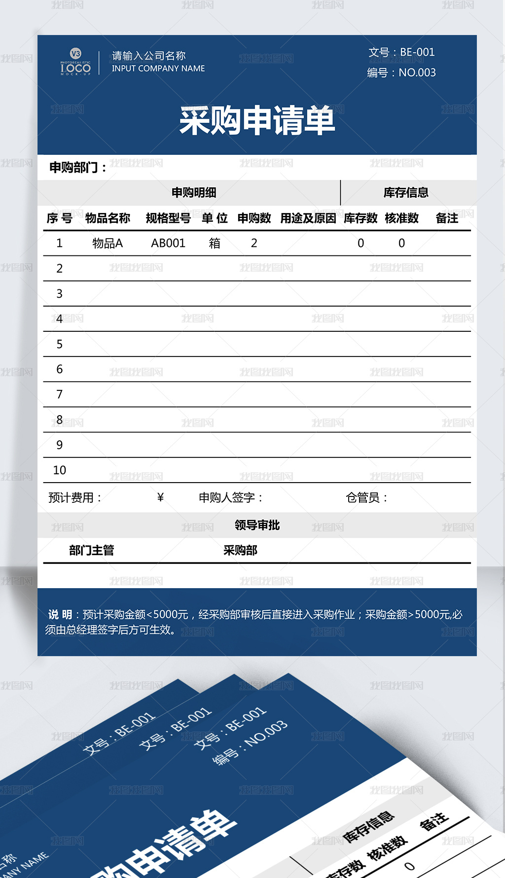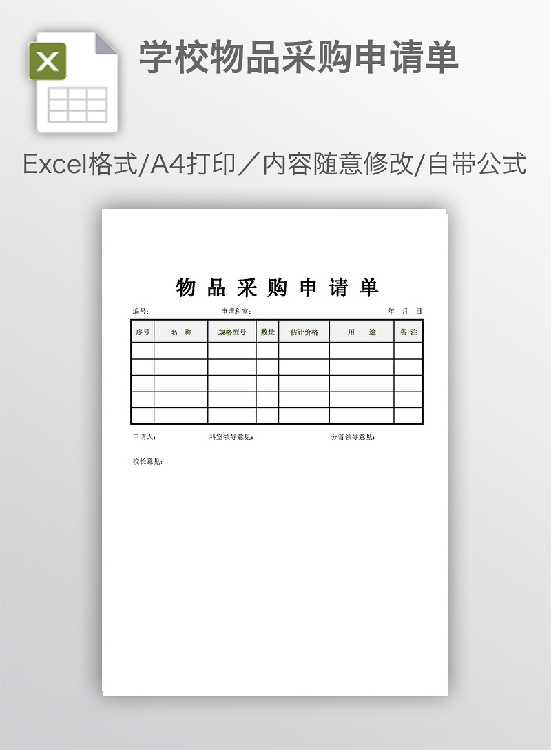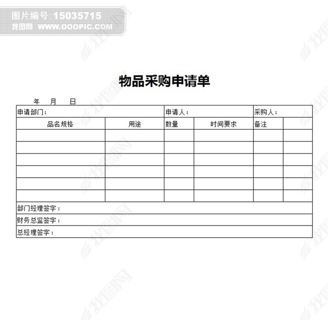 公司物品采购申请表Excel模板下载_xlsx格式_熊猫办公