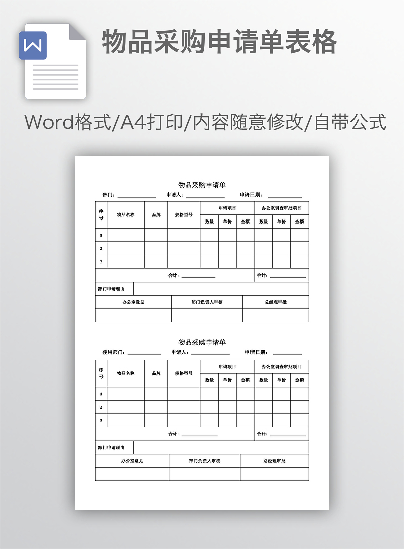 物品采购申请单表格_word文档在线阅读与下载_无忧文档